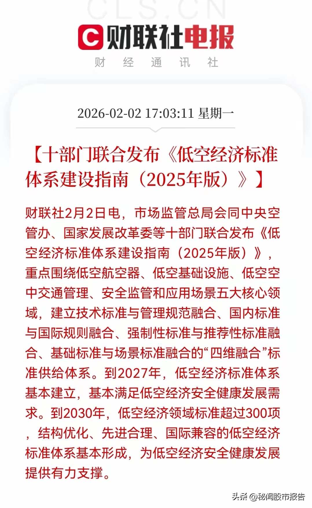 低空经济迎来大利好,“十部门”联合发布体系标准,盘后消息十部门发布《低空经济标准