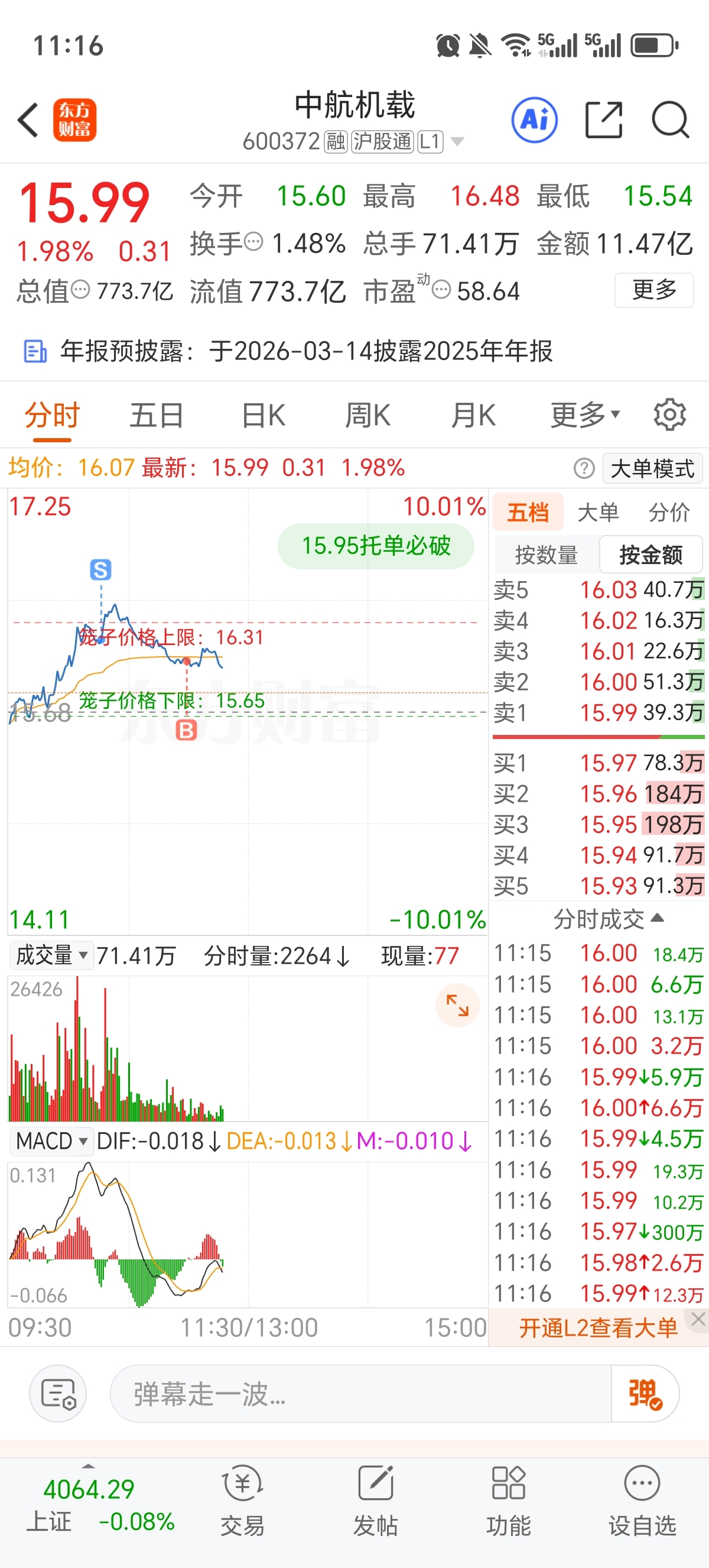 $中航机载(SH600372)$ 进早了
