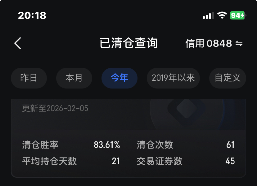 这2个月一共买进45只股票,平均持仓21天,83%胜率,可以算一下我每天买了几只股票