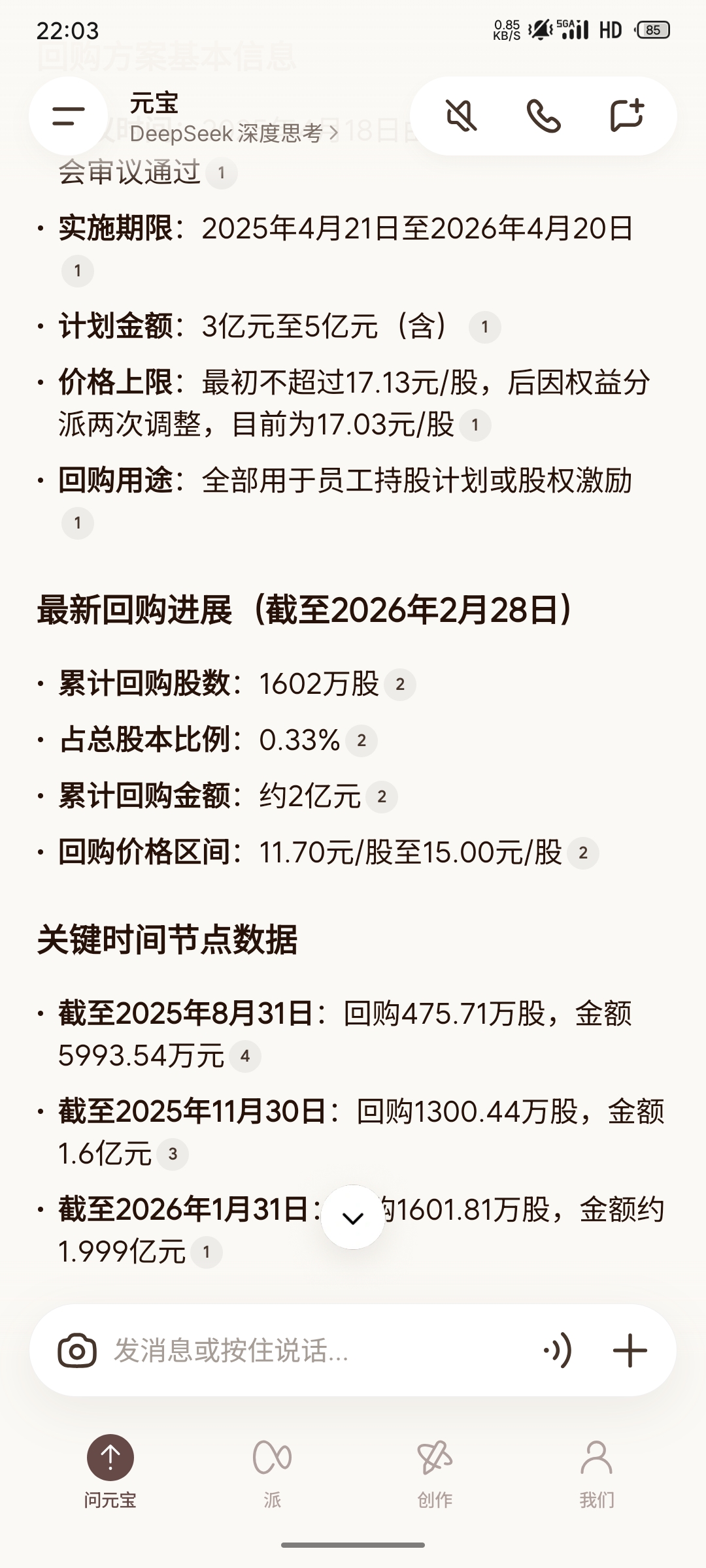 还有一个月就结束了,现在回购金额才2亿,计划是3-5亿,后期回购价格肯定高于15