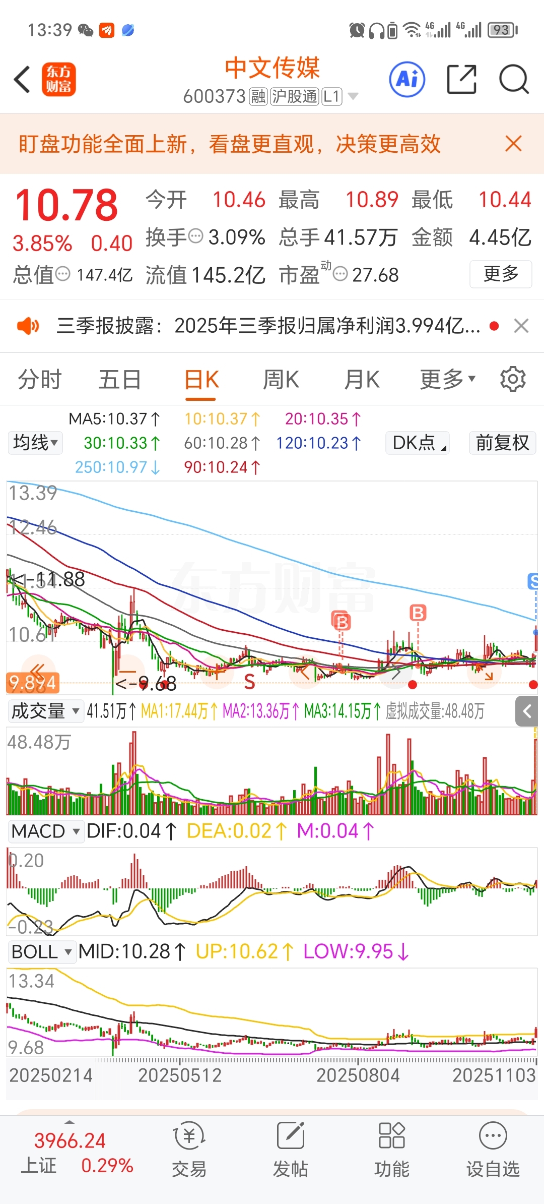 $中文传媒(SH600373)$ 可以跌了