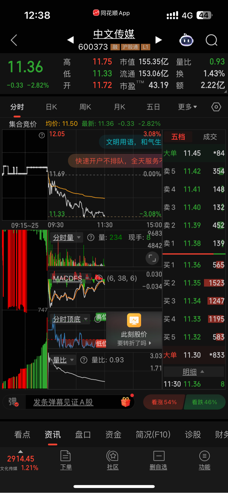 $中文传媒(SH600373)$ 今天11.61重仓进的被套了,有没有大佬说一下该怎么办