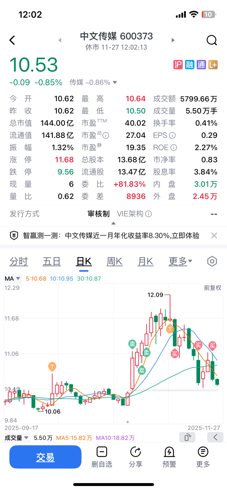 $中文传媒(SH600373)$ 无限子弹流,放量涨慢慢卖,放量跌慢慢买!目的跑赢银行利息