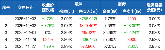 中文传媒:融资净偿还786.92万元,融资余额3亿元(12-03)