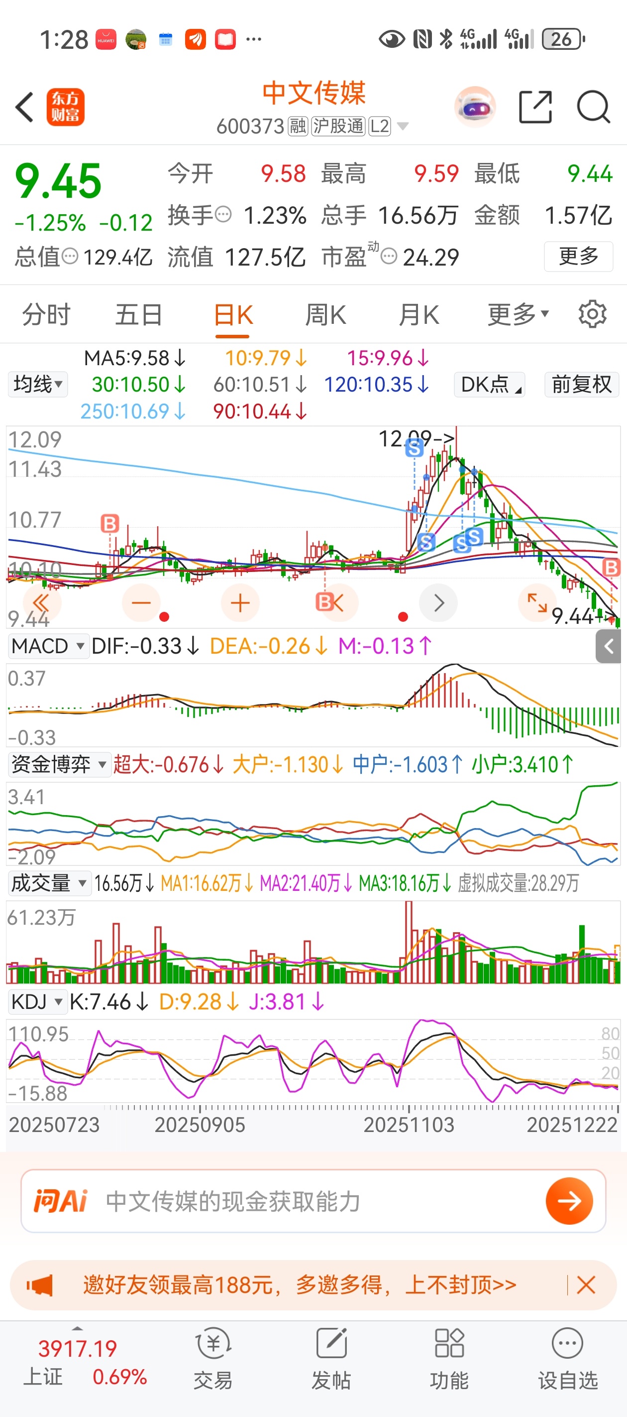 $中文传媒(S昨天建仓,跌十个点再加一万,我不怕跌H600373)$