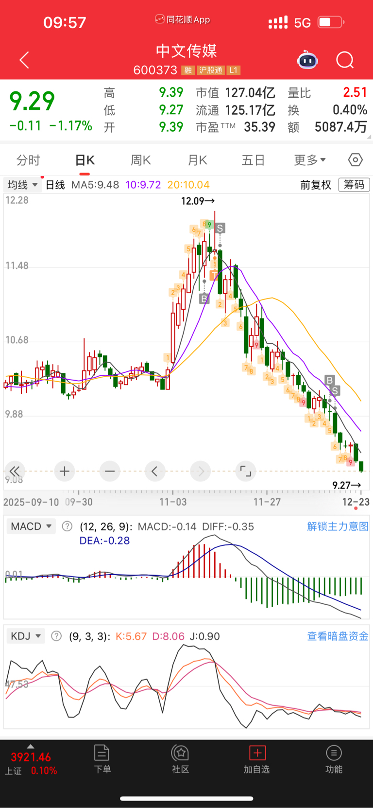 $中文传媒(SH600373)$ 真有你的 还好我跑得快