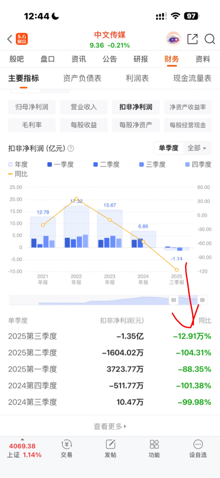 $中文传媒(SH600373)$ 扣非净利润亏这么多,下一步就是8元了