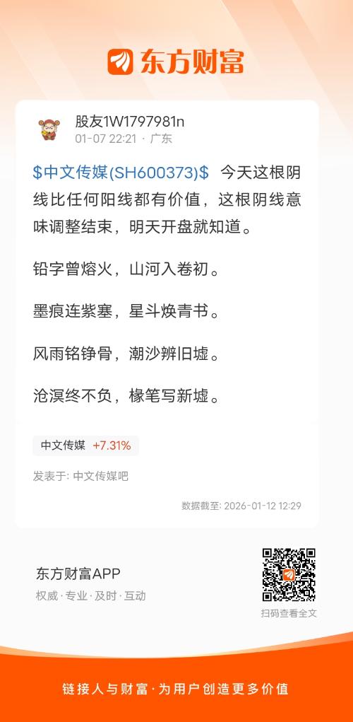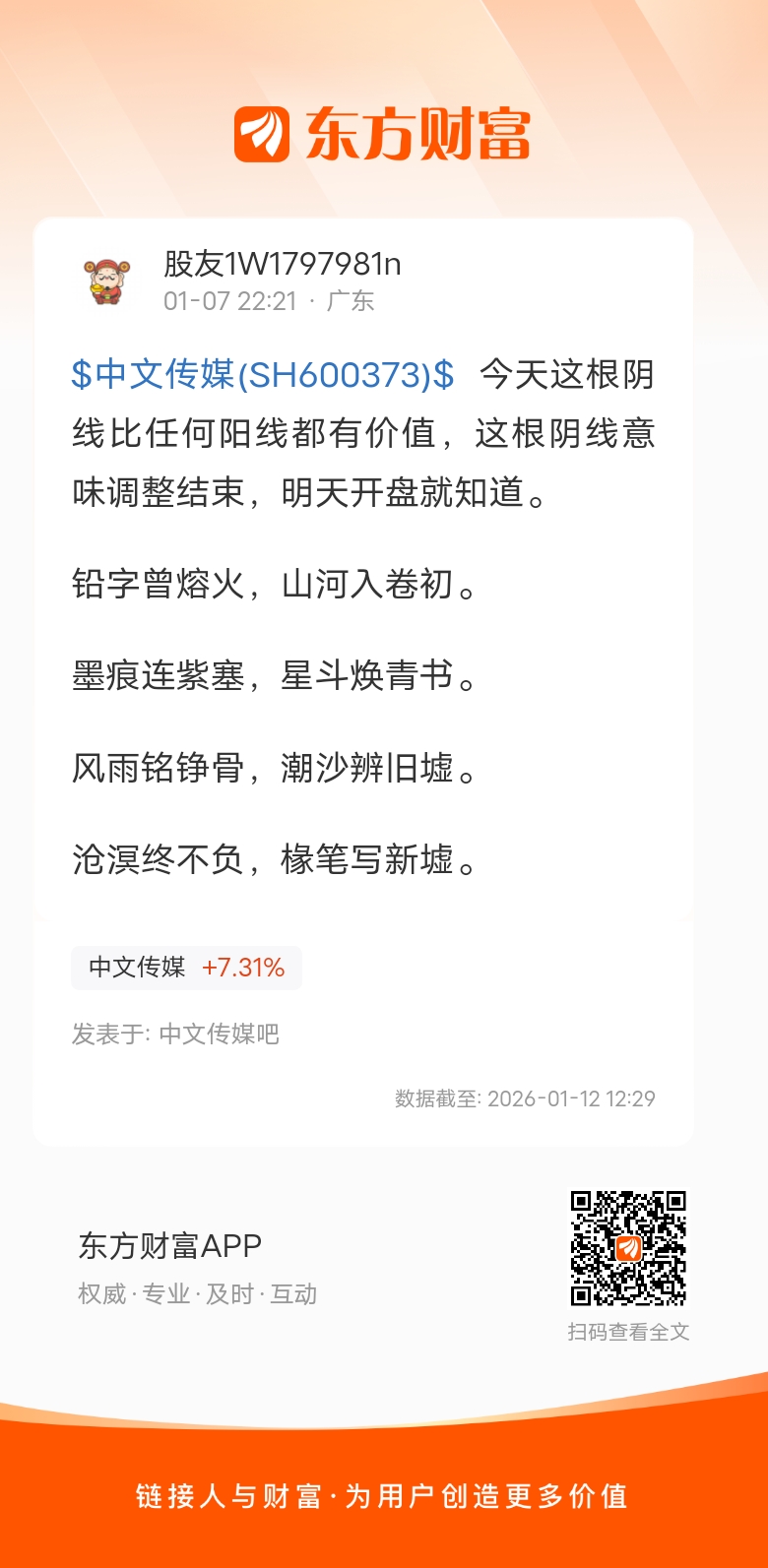 $中文传媒(SH600373)$ 今天这根阴线比任何阳线都有价值,这根阴线意味调整结束,明天开盘就知道。
