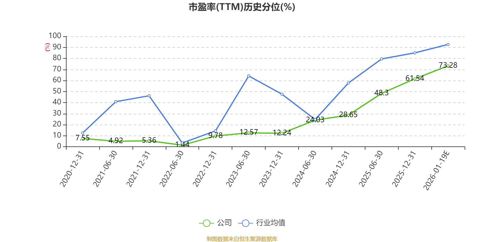 以本次披露业绩预告均值计算,公司近年市盈率(TTM)图如下所示: