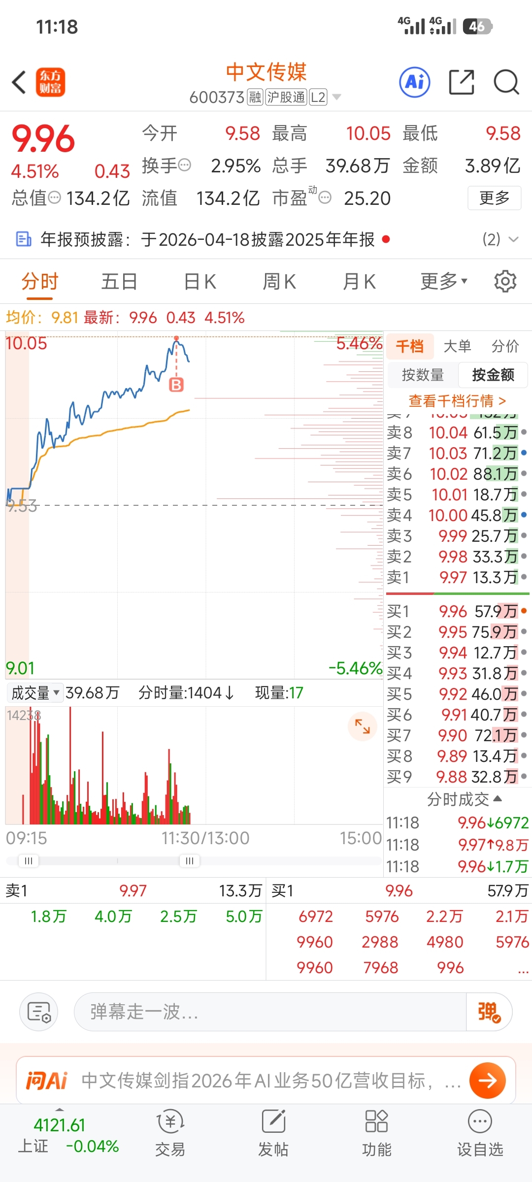 $中文传媒(SH600373)$ 被我买跌了
