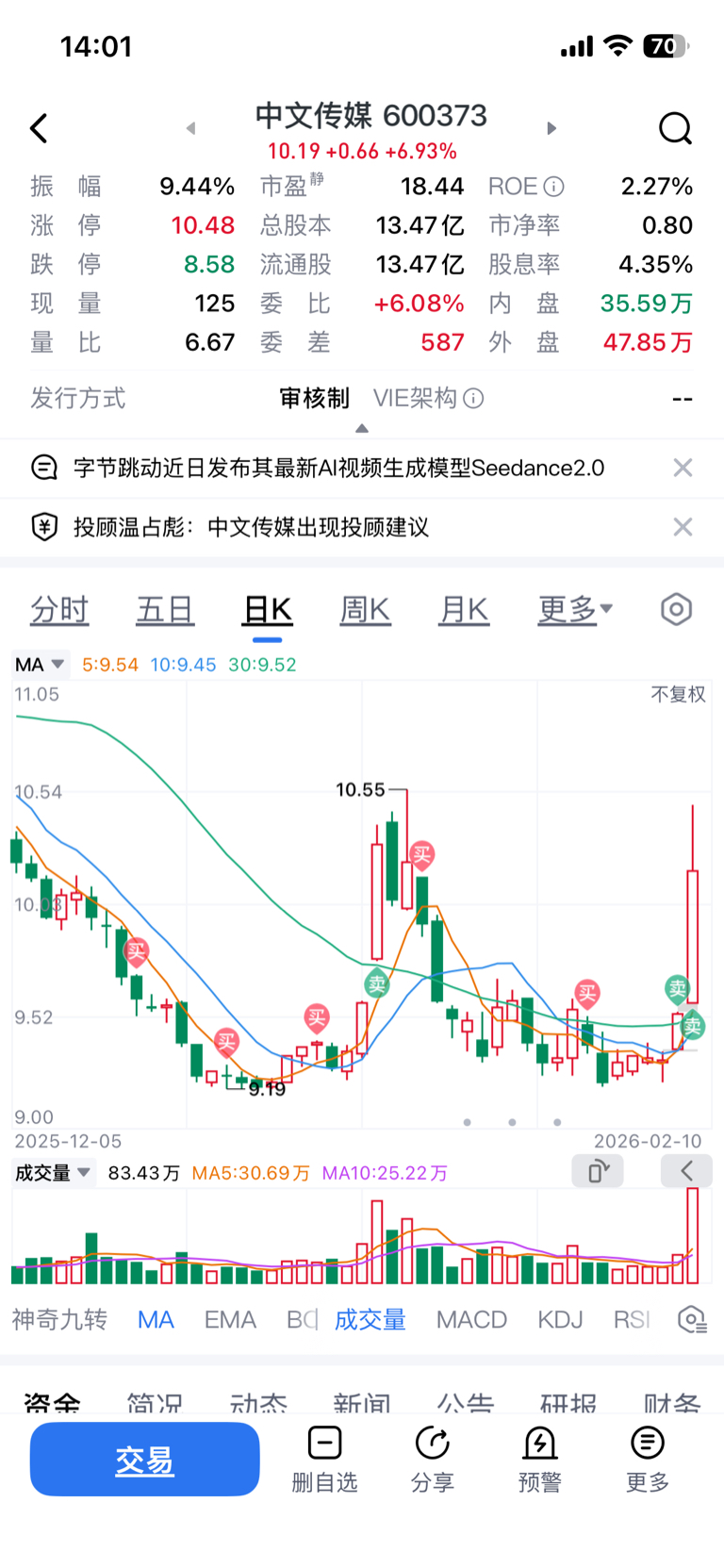 $中文传媒(SH600373)$ 低位放量了,等回调后再找机会