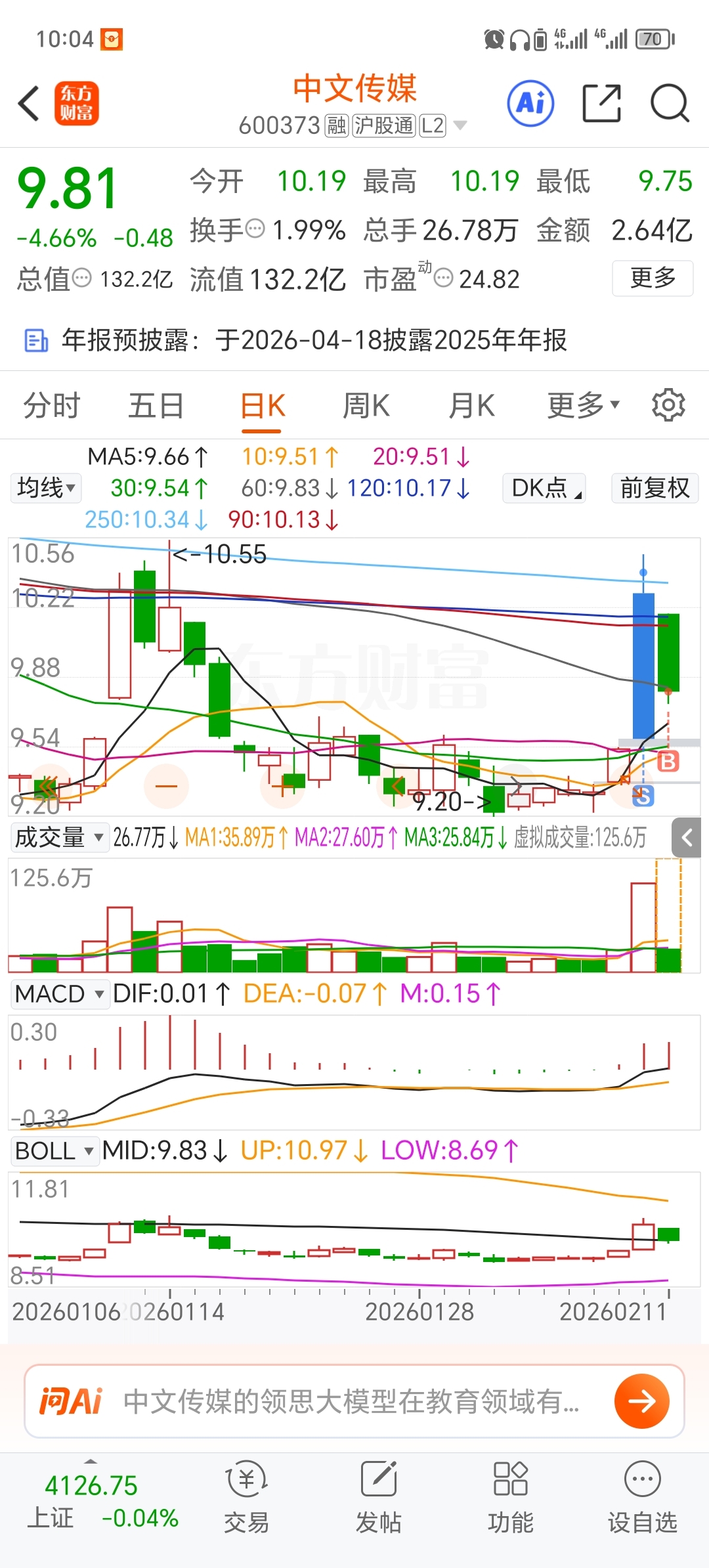 $中文传媒(SH600373)$ 先接点回来!年后再接!祝各位春节快乐!马年翻倍!
