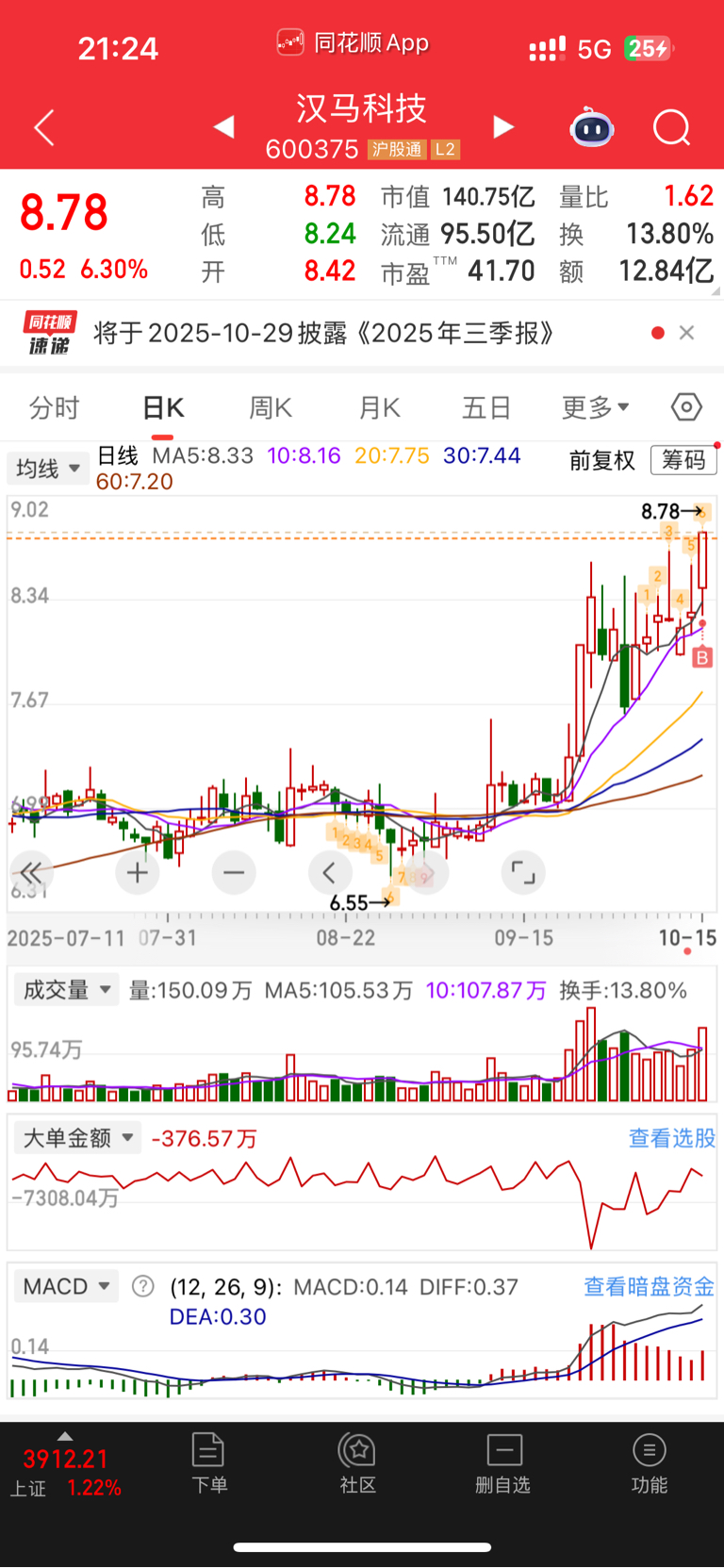 $汉马科技(SH600375)$ $福龙马(SH603686)$ 去年大丰收,看看今年的小马儿有没有收获呀!不来三个跌停休想把我下车!!!