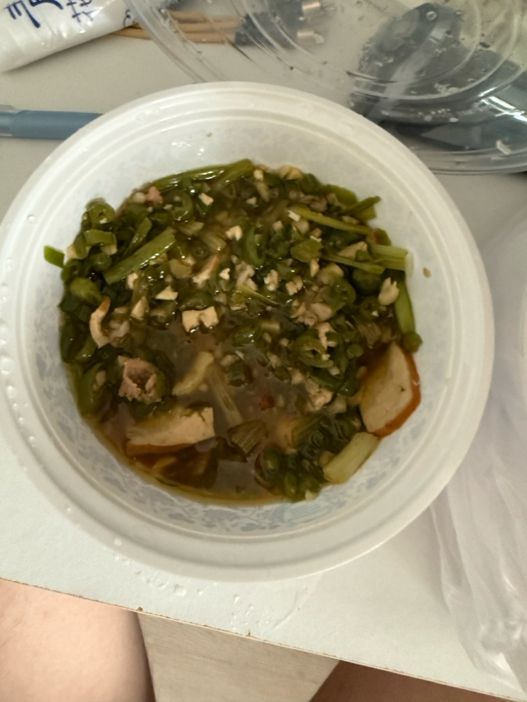 吃完一半了,另一半留着当晚饭。