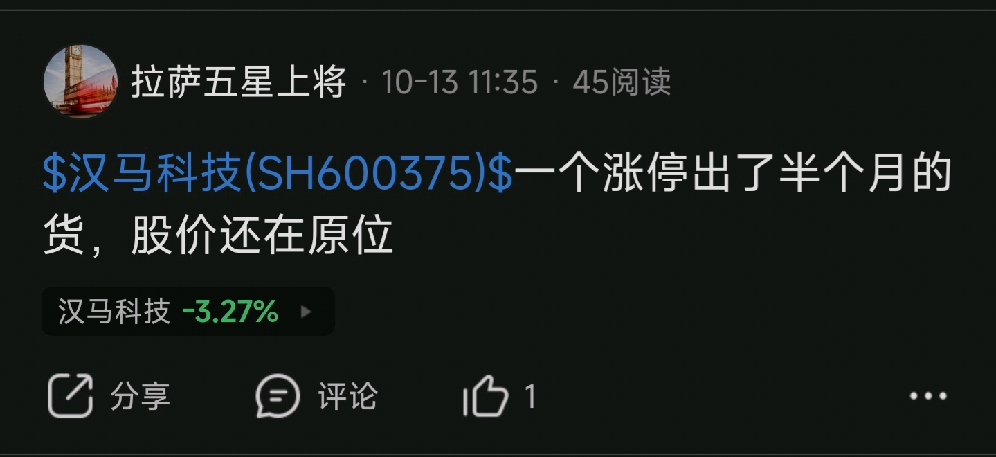 $汉马科技(SH600375)$ 臭韭菜但凡听劝也不能亏的那么惨,笑死