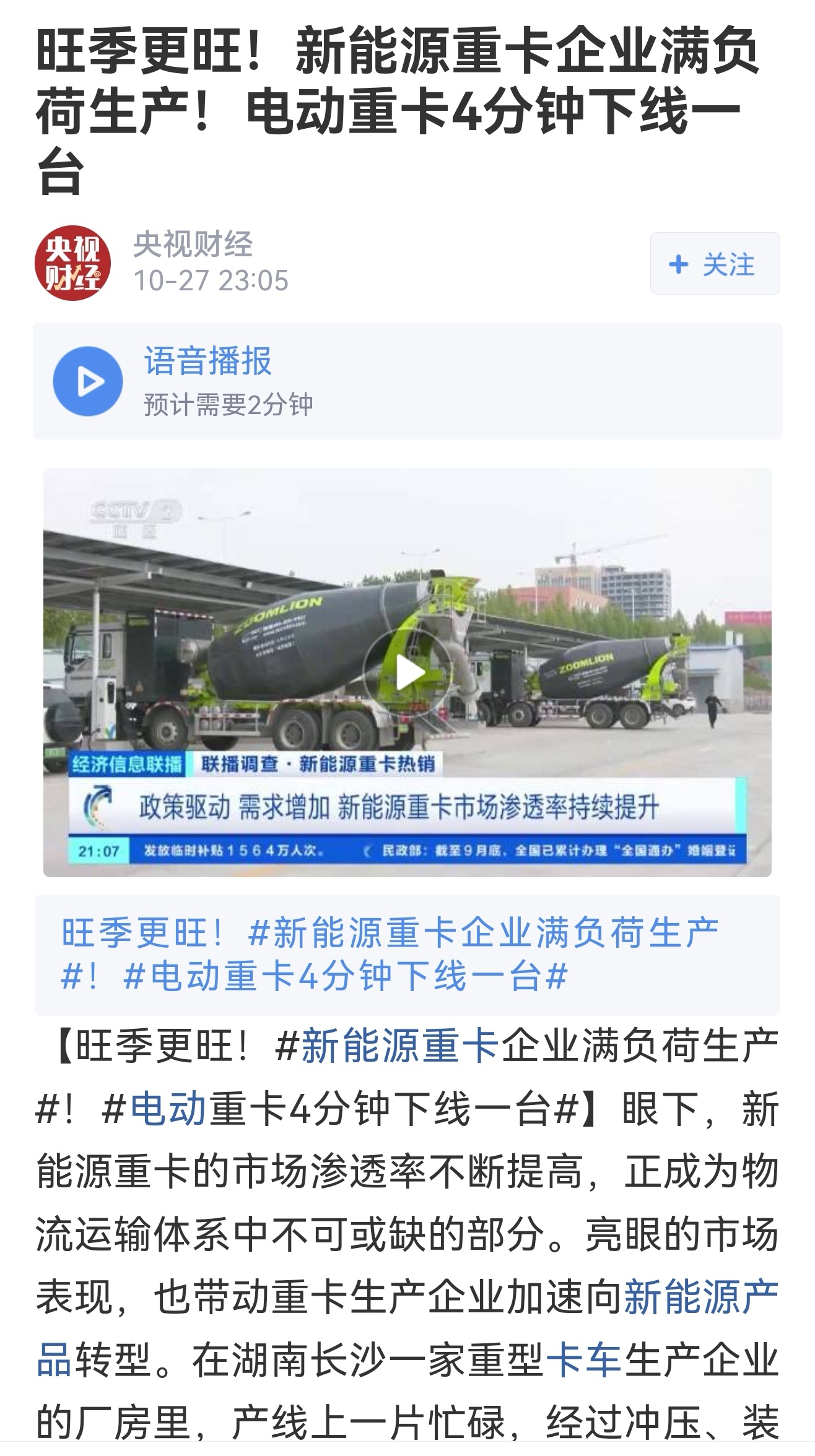 旺季更旺!新能源重卡企业满负荷生产!电动重卡4分钟下线一台!