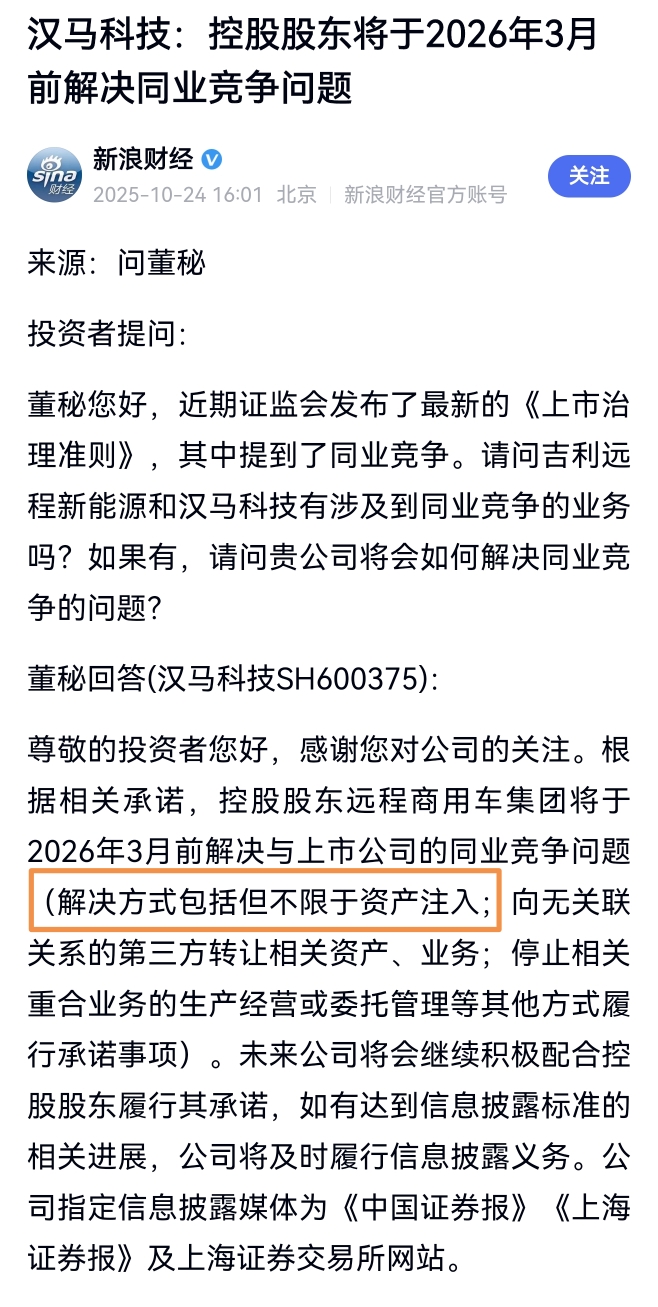 还有资产注入预期!根据相关承诺,控股股东远程商用车集团将于2026年3月前解决与上市公司的同业竞争问题!