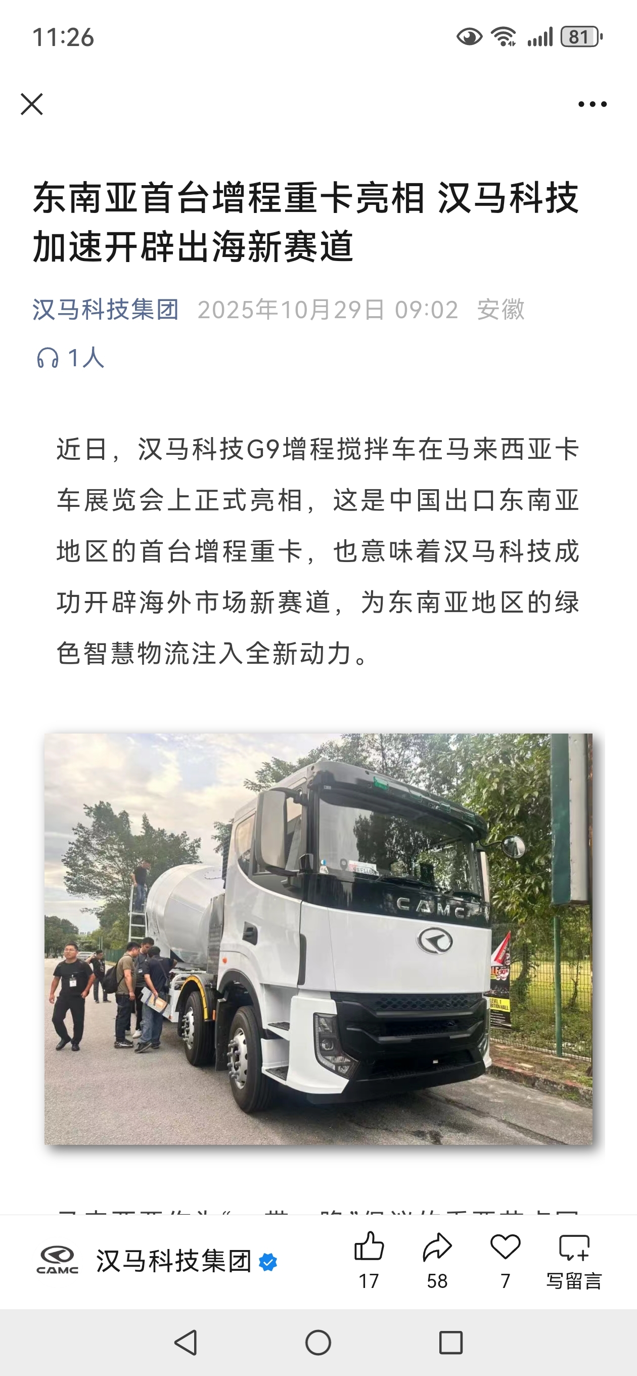 $汉马科技(SH600375)$ 汉马科技官微早上又发利好了,说明汉马科技公司也不希望股价跌,可惜资本不买账。