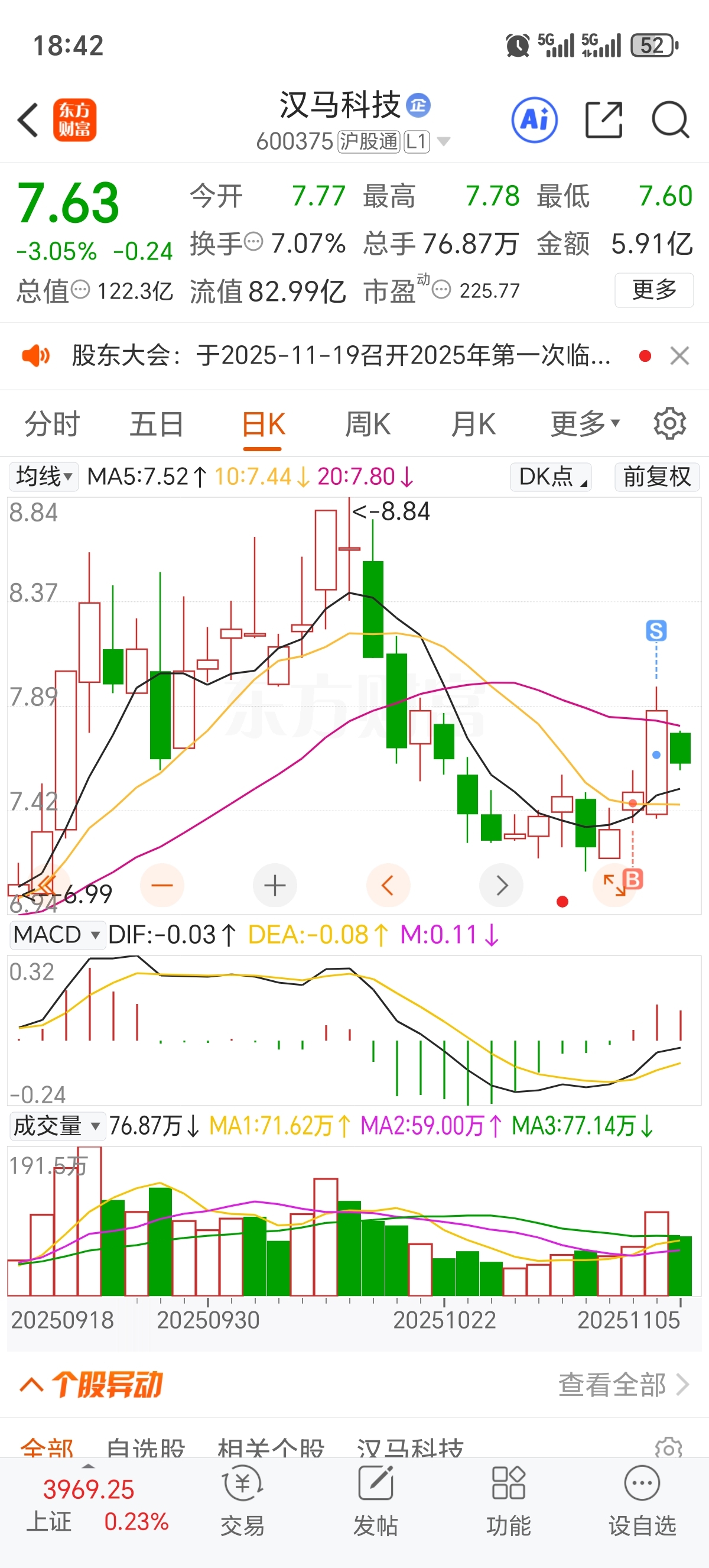 $汉马科技(SH600375)$ 生肖马热度不够啊还好走了