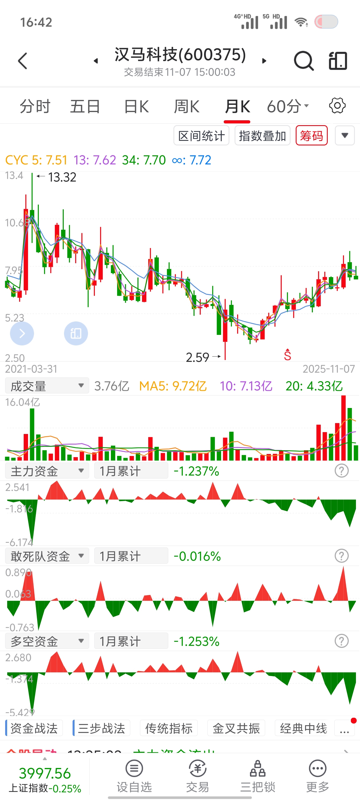 $汉马科技(SH600375)$ 资金确实一直再出。