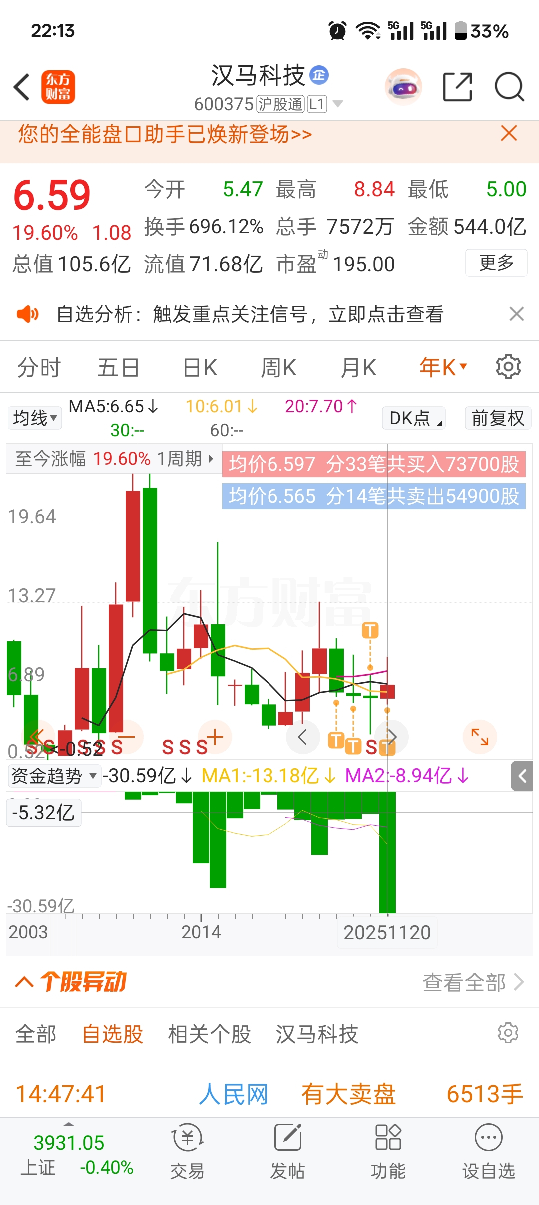 $汉马科技(SH600375)$ 再跌10个点割肉