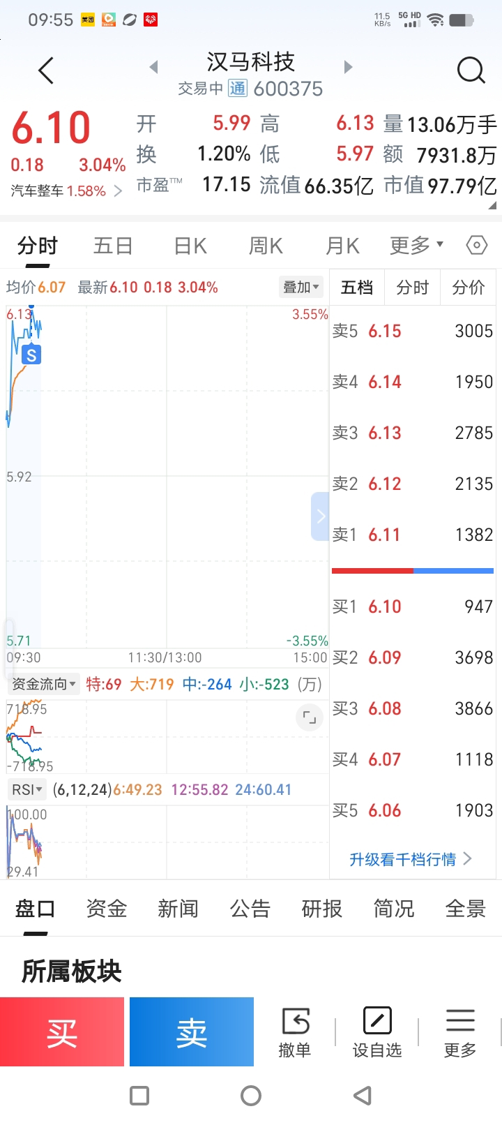 $汉马科技(SH600375)$ 卖了一半现在成本5.63等26号以后看啥情况在加进来。