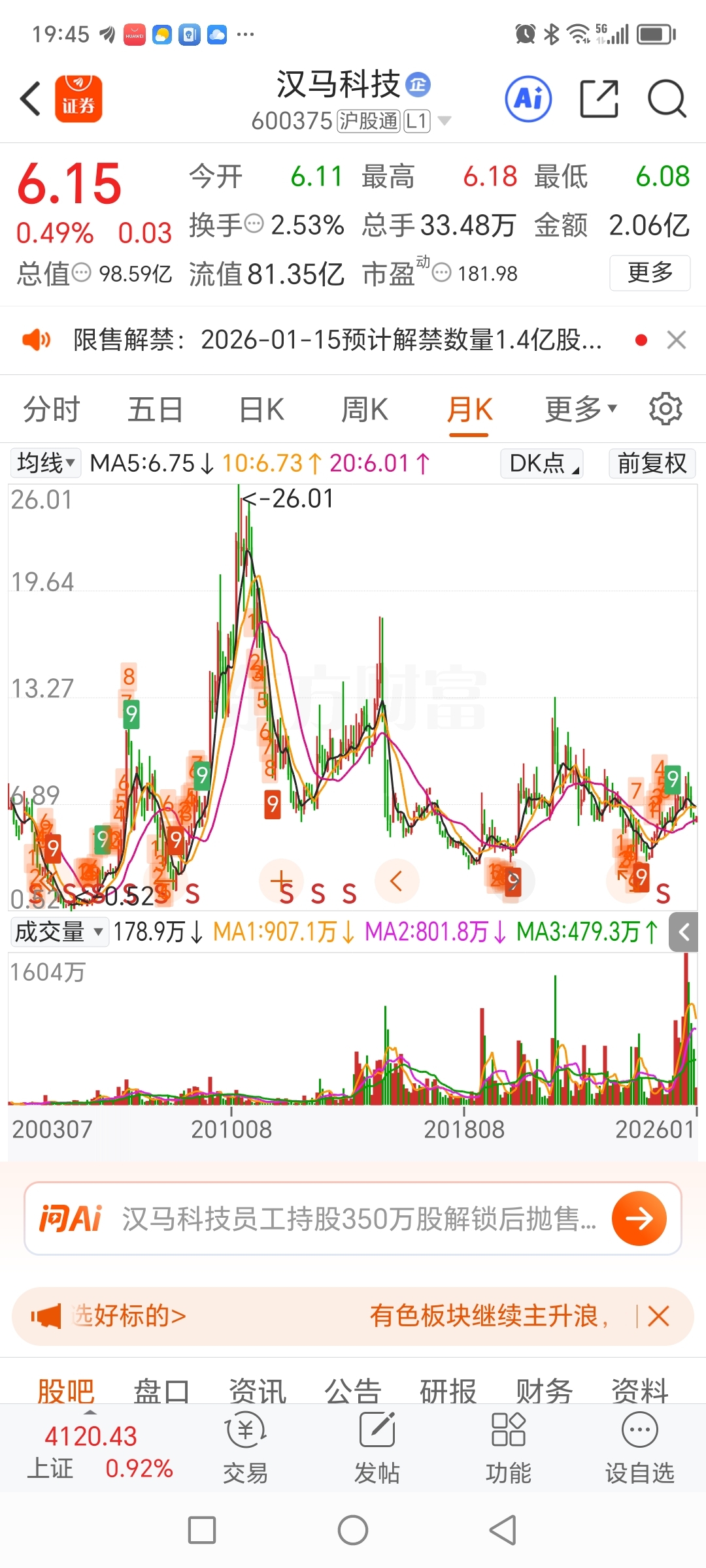 $汉马科技(SH600375)$ 当年最高峰26元多的股票,现在牛市还是当年的零头,汉马2026期待你滕飞起来。