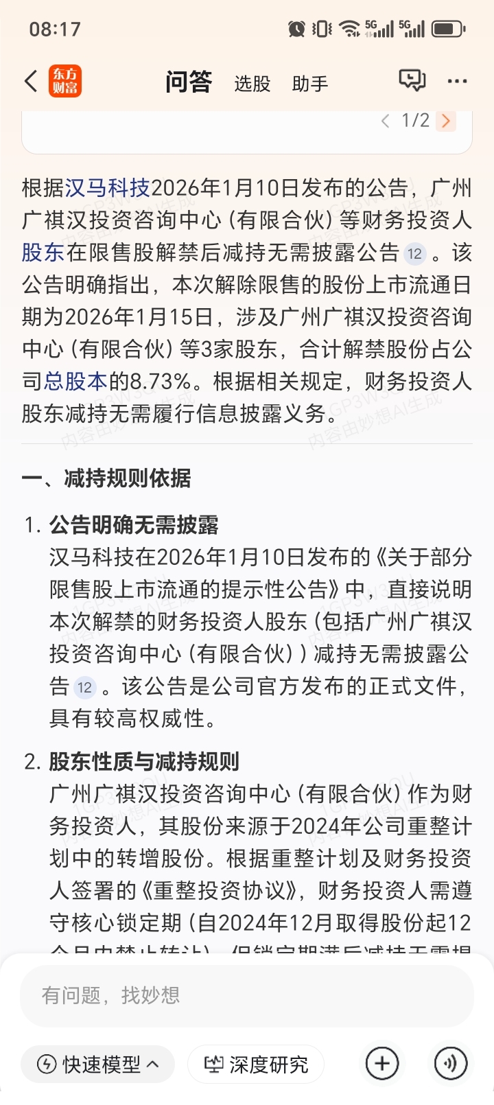 $汉马科技(SH600375)$ 汉马科技的第二大以下股东减持都无需发布公告的!持股都少于5%了!
