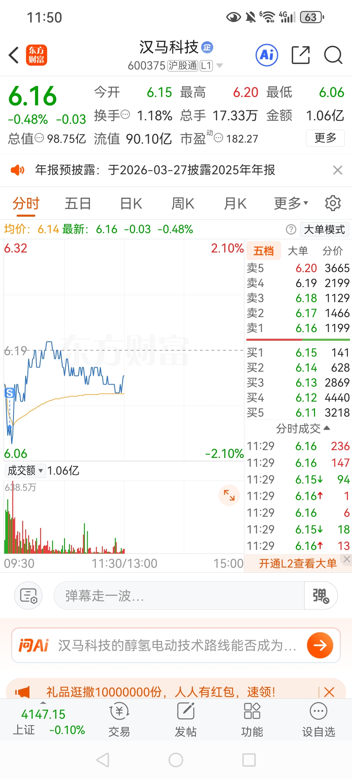 $汉马科技(SH600375)$ 跌破就卖,原则问题。