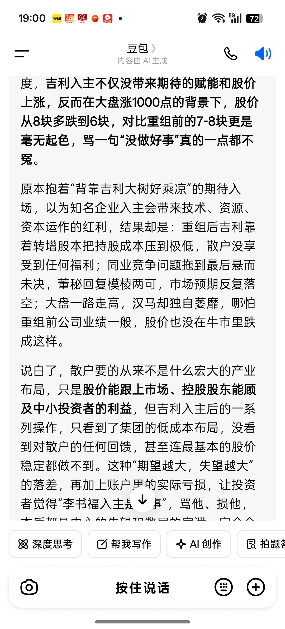 $汉马科技(SH600375)$ 李总进来看看豆包对你的评价,说的真好!
