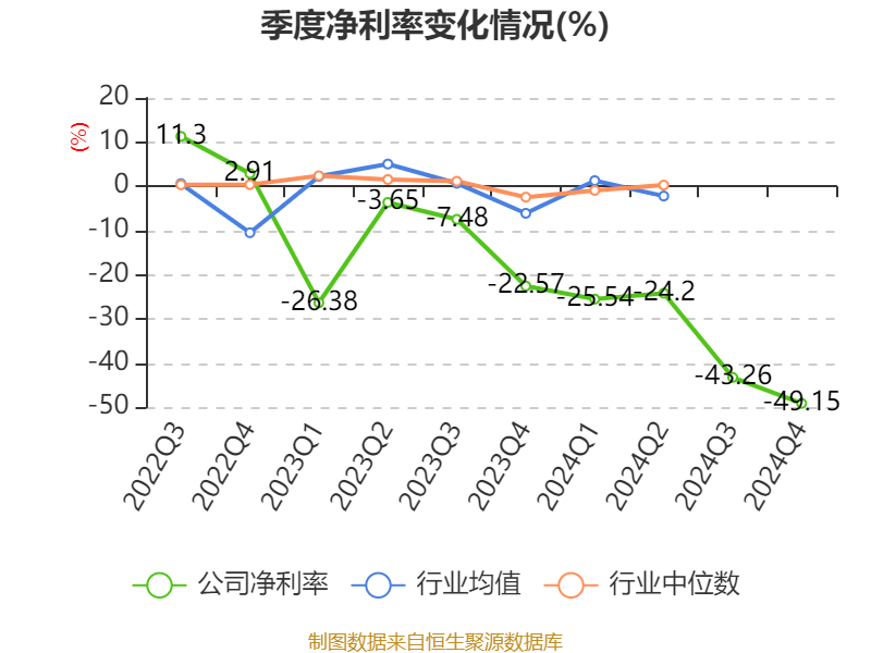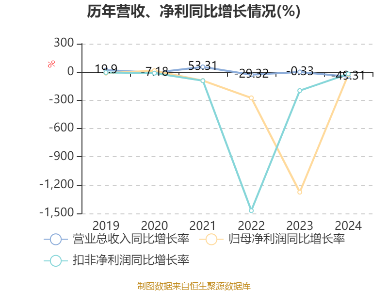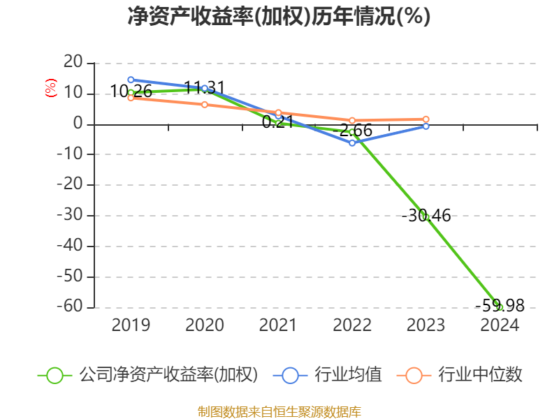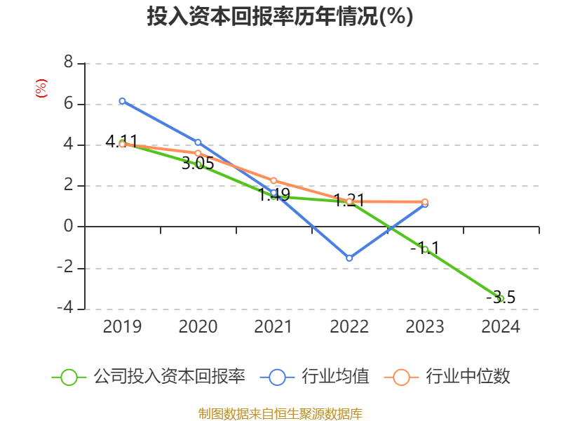 数据显示,2024年公司加权平均净资产收益率为-59.98%,较上年同期下降29.52个百分点。公司2024年投入资本回报率为-3.5%,较上年同期下降2.4个百分点。