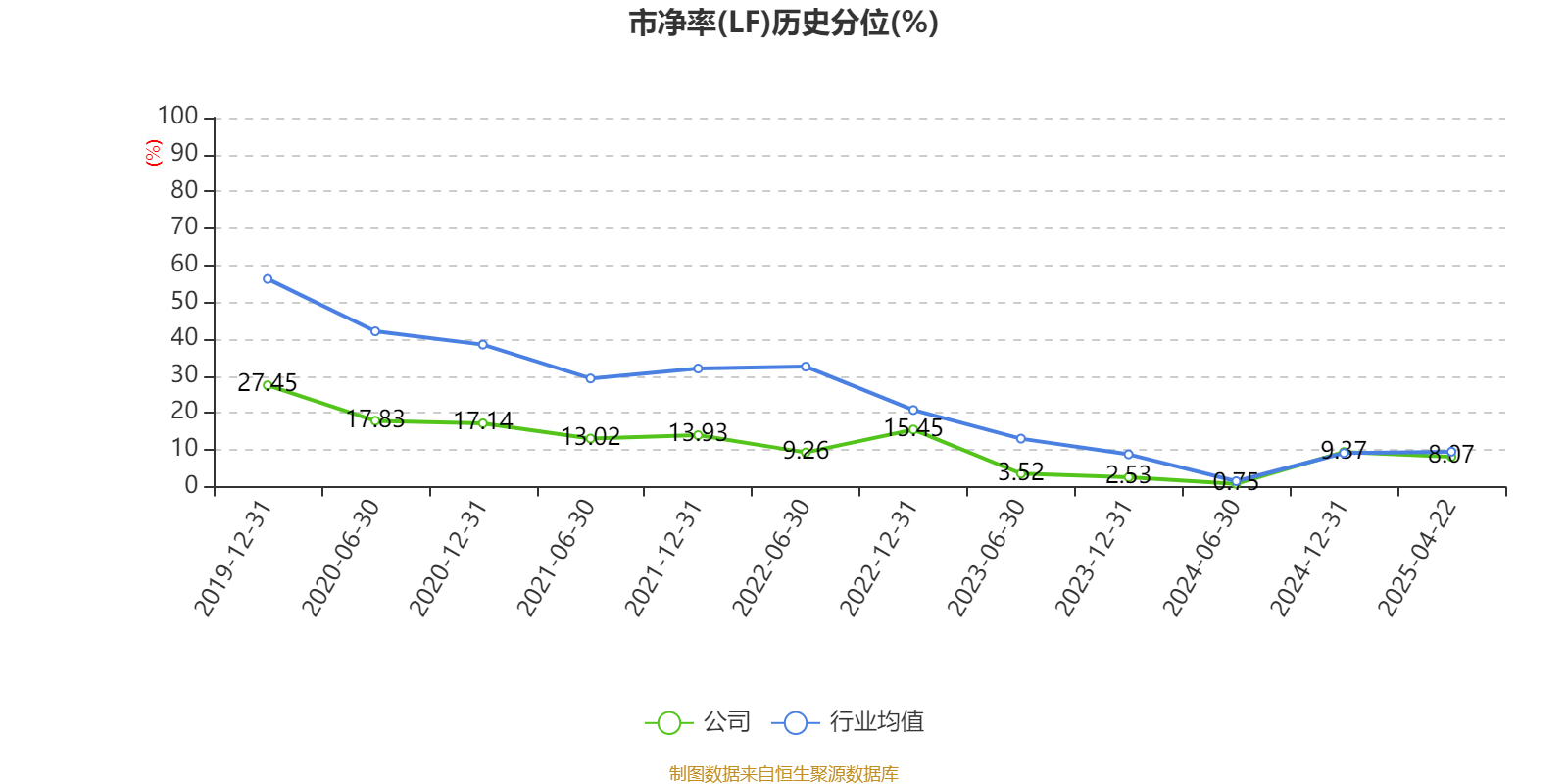 市盈率、市净率为负时,不显示当期分位数,会导致折线图中断。