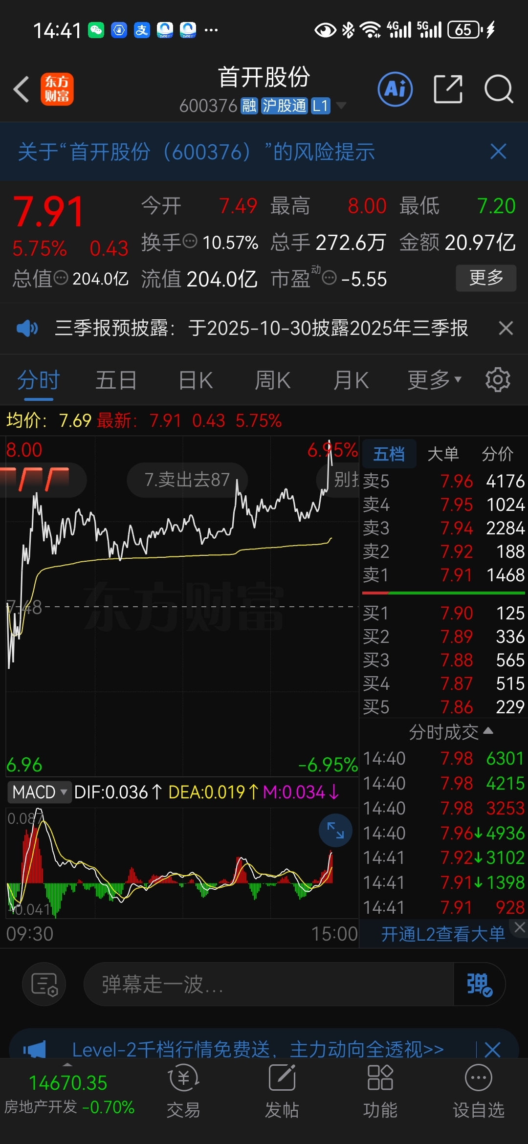 $首开股份(SH600376)$ 2025年10月9日收盘价格7.93元,明天跳空高开8.18元左右,回落回补缺口,然后直线拉升,可能涨停!