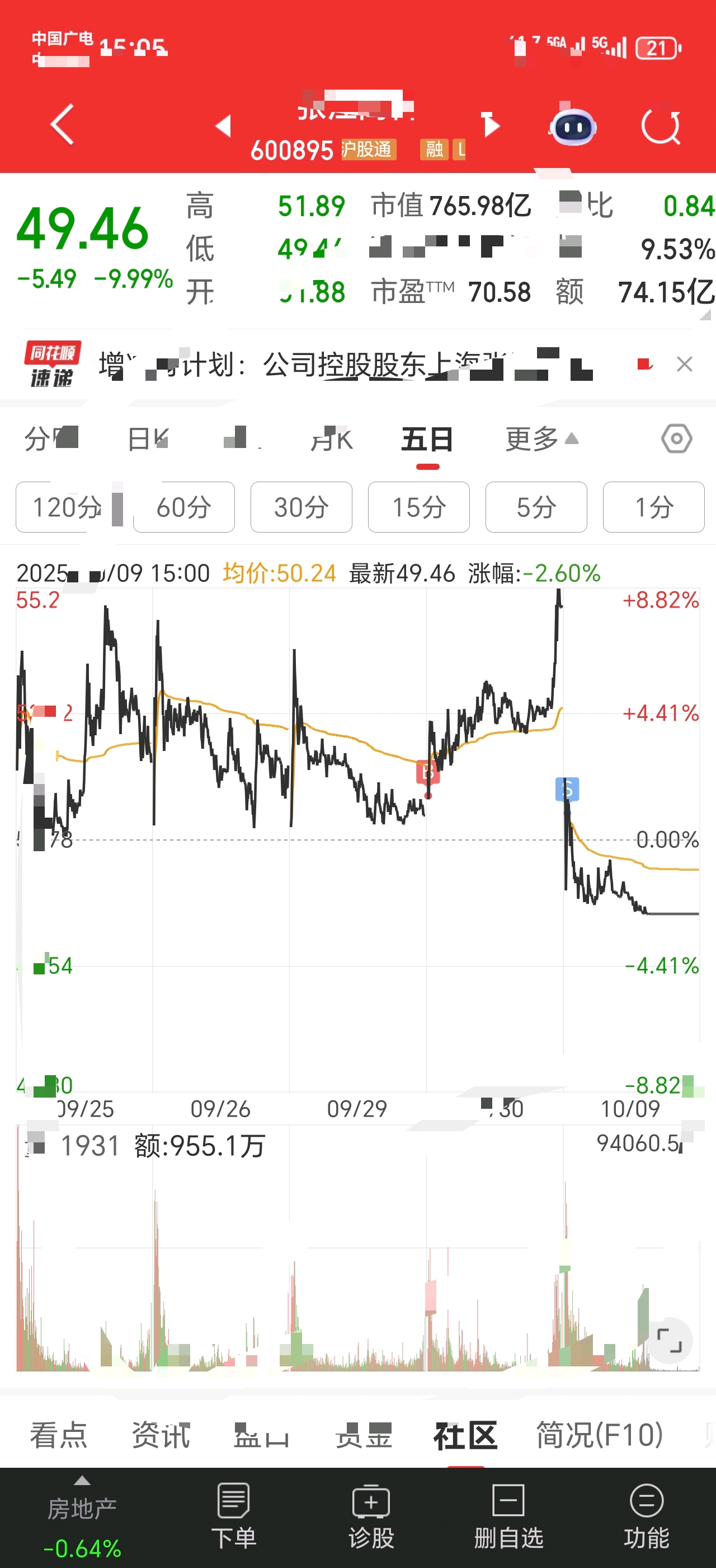 $首开股份(SH600376)$ 拉尾盘 心里好慌 张江30号拉的尾盘