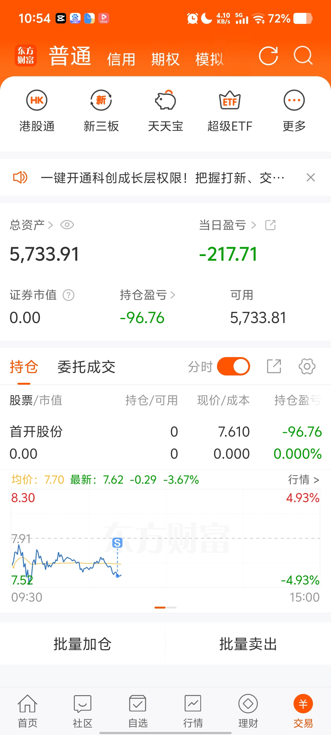$首开股份(SH600376)$ 亏钱效应开始就应该早些走掉的,还是意了,还需要进步。今天先空了,最近少出手,风险第一位。