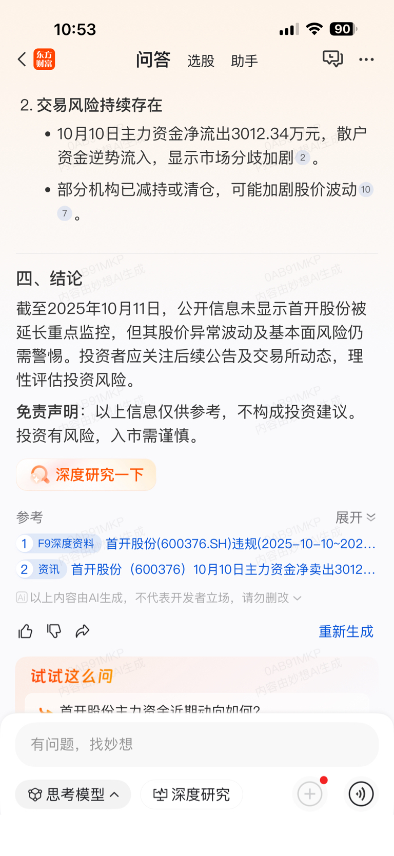 $首开股份(SH600376)$ 你们用东财的Ai助手问一下不就知道了,我问了他说没有延长重点监控