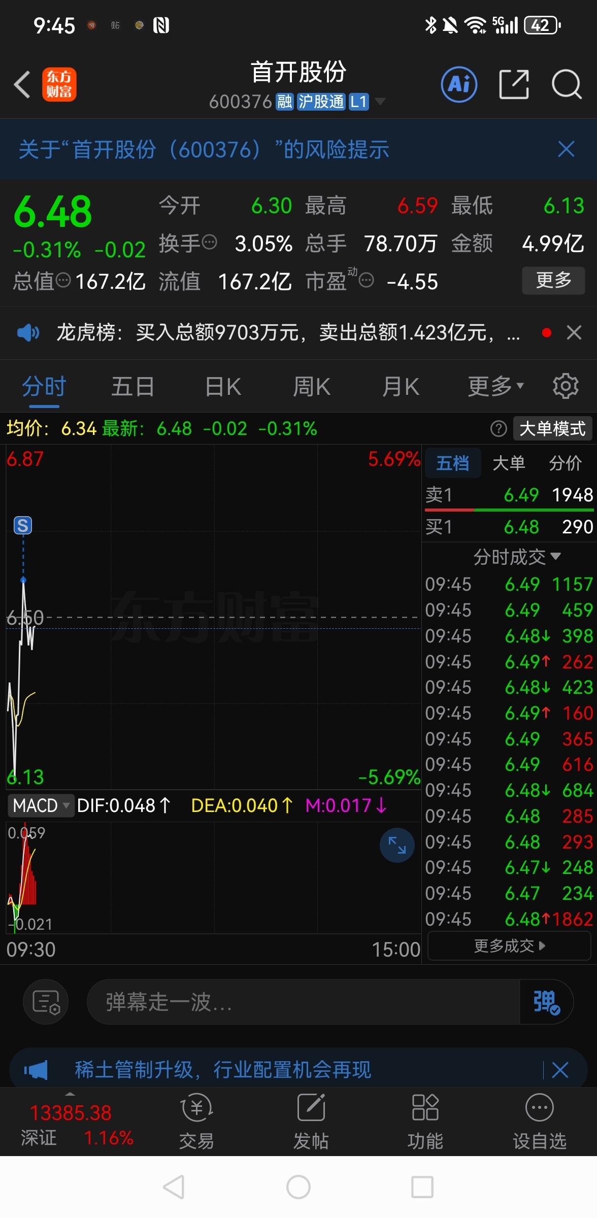 $首开股份(SH600376)$ 兄弟们胆小赚1个点跑了