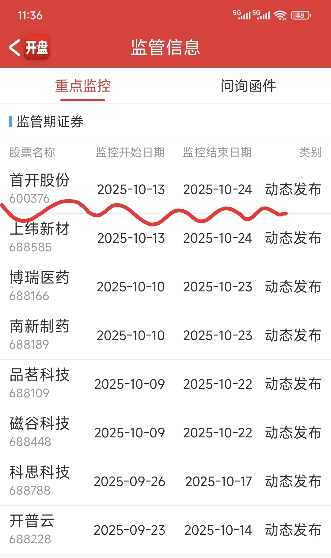 $首开股份(SH600376)$ 其实东方财富延长监管的信息更快一些,周一开盘之前就更新。