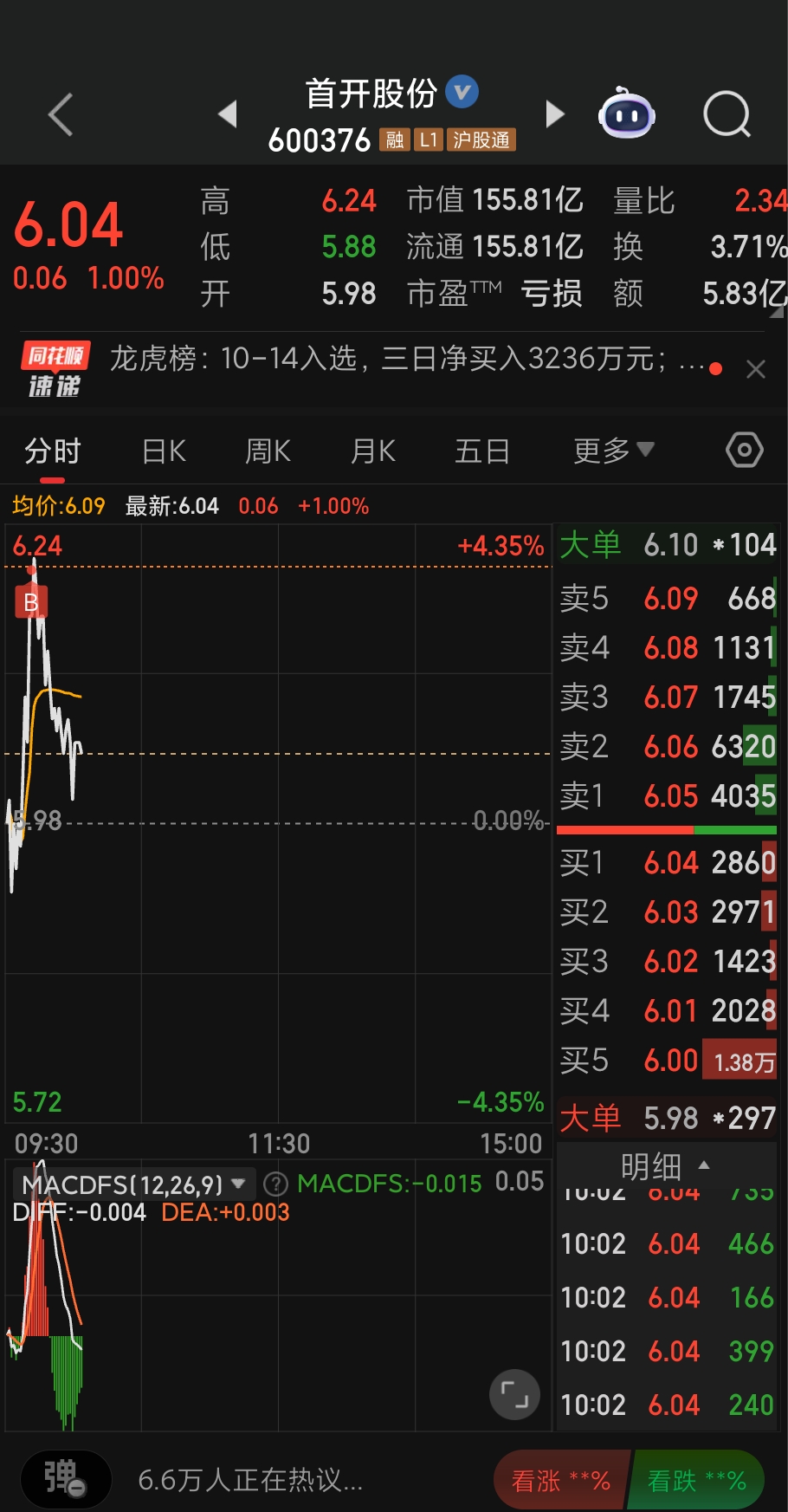 $首开股份(SH600376)$ 追高首开追高一个,抄底一个,一日游,我倒要看看哪个赔哪个赚