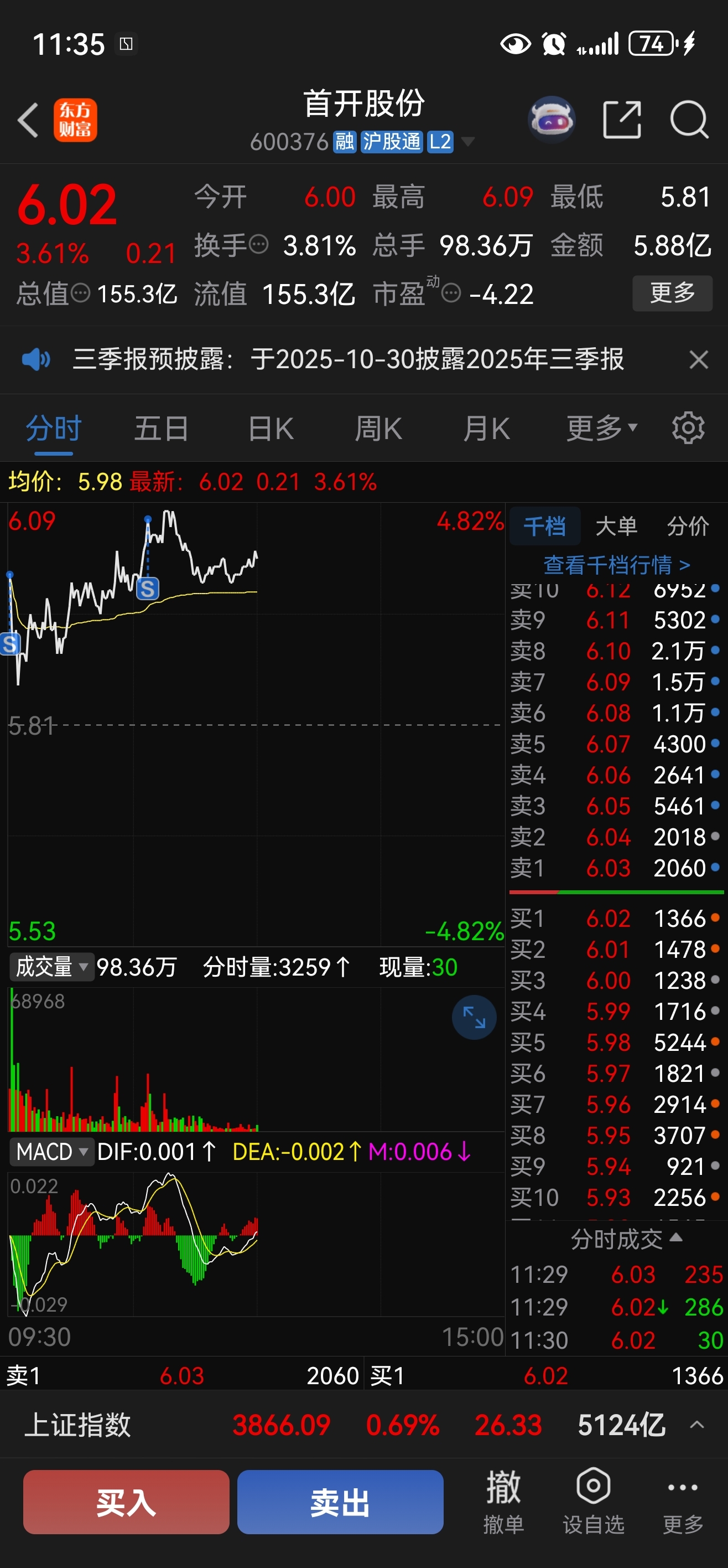 $首开股份(SH600376)$ 午间点评:今日开盘符合预期。天普股份如期开板,早上强度可以,但没有持续性;上纬新材持续反弹冲高回落。三股之间的共振效益不够强烈,首开上午量能不足,下午如果放量收阳线则短期底部确认5.9元。操作上依然冲高减仓,如未放量,则明天大概率还有逢低补回机会。