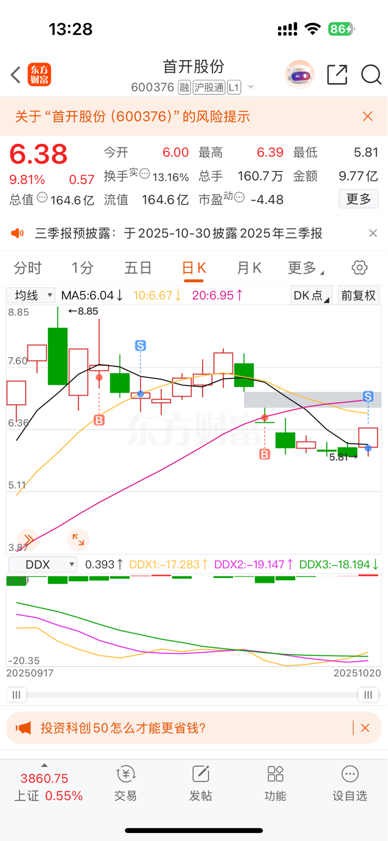 $首开股份(SH600376)$ 拿了5天,我一卖就涨,不玩了,我认输