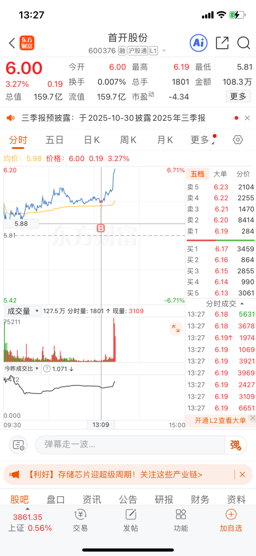 午盘介入个股$首开股份(SH600376)$ 期待拿下涨停#强势机会# #实盘记录# #投资干货# #投资随笔# #炒股日记#
