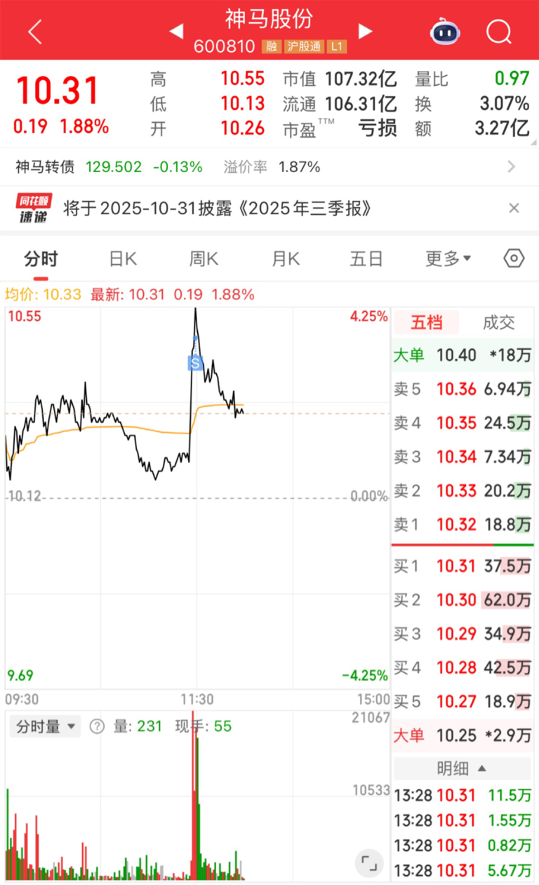 神马股份:上个交易日10.43买入,盘中下杀到10.2,于今日10.48卖出,虽然收盘10.57,但是做短线者讲究的是不及预期及时回撤,目前认为盘中资金有分歧,有一部分认为强制转股后的抛压比较大所以资金出逃,但尾盘主力想做多实现债转股,主力做多意愿明显后续会持续关注。