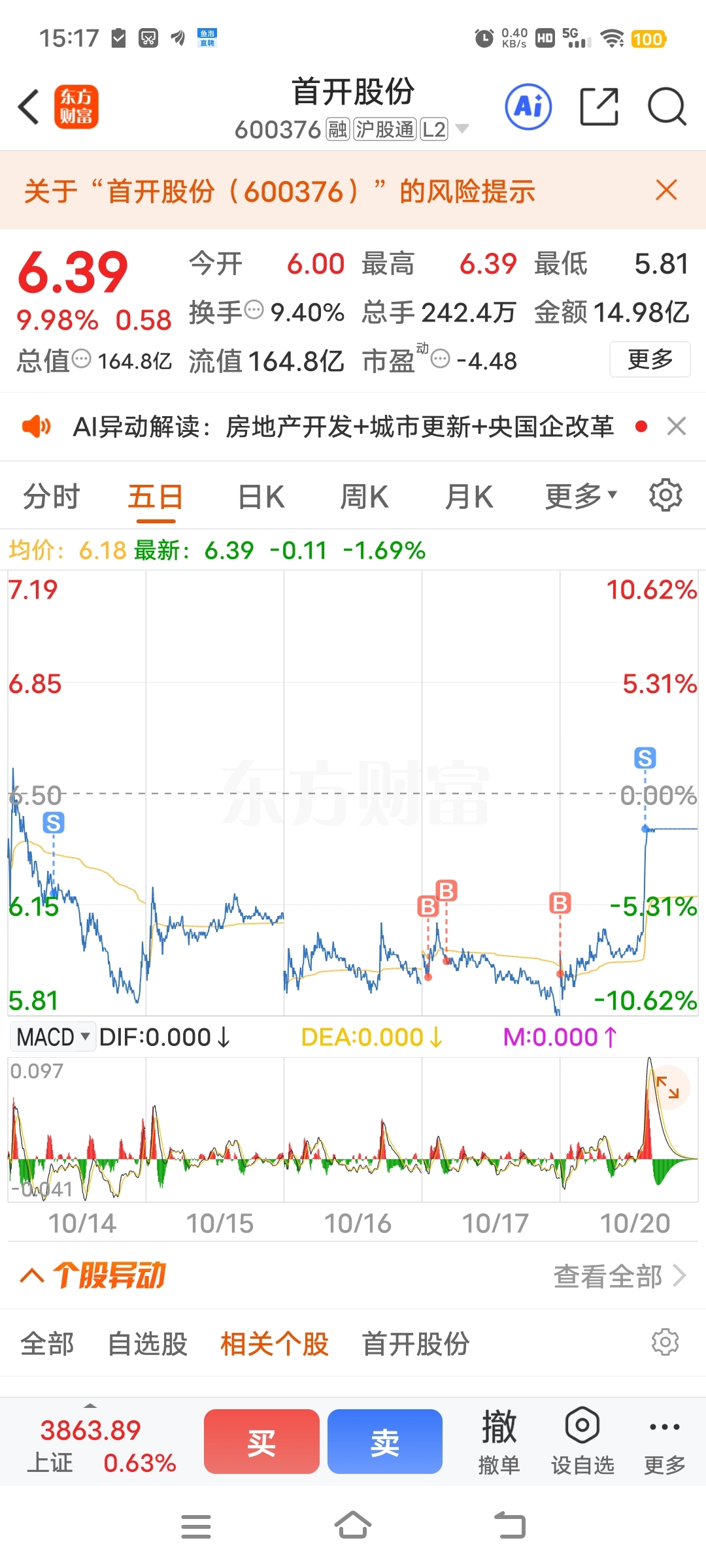 $首开股份(SH600376)$ 吃到一个板子,预判准确!