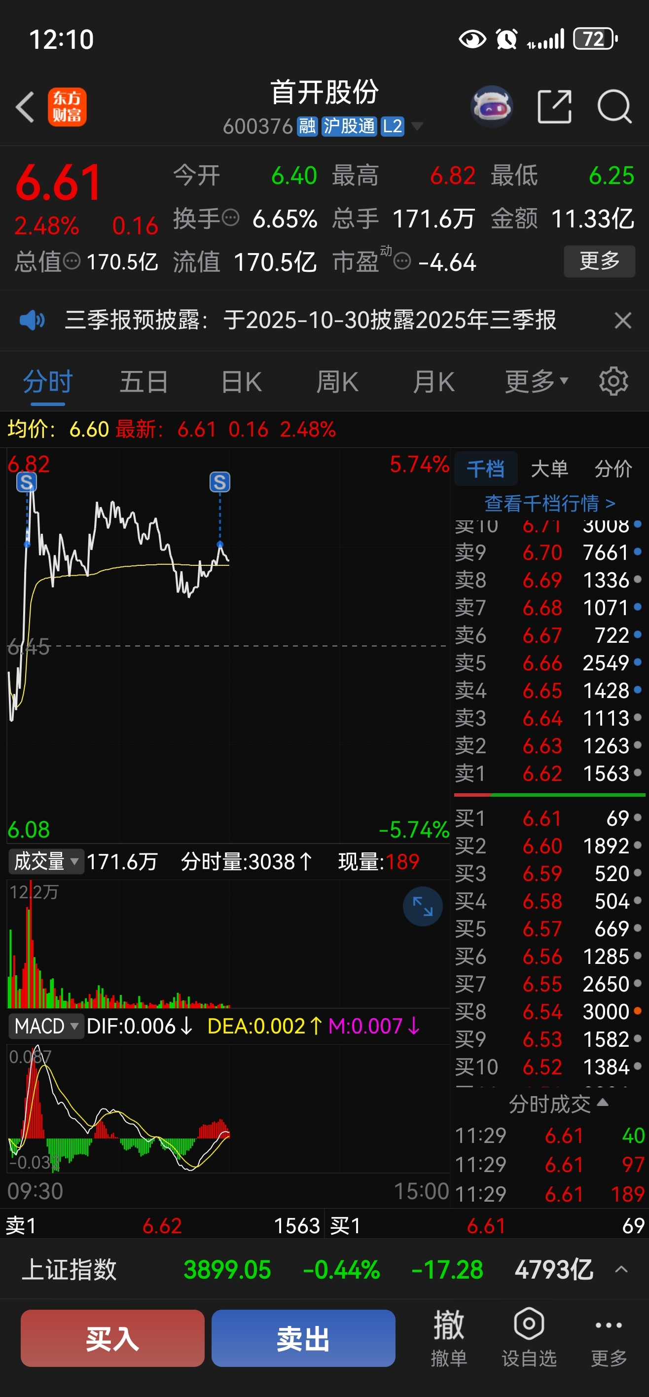 $首开股份(SH600376)$ 午间点评:今日继续反弹,到达上次箱体底部6.8元,压力比较大。天普和上纬也同时发力反弹,形成共振。操作上逢高卖出,预计会随大盘调整,明日逢低再买。