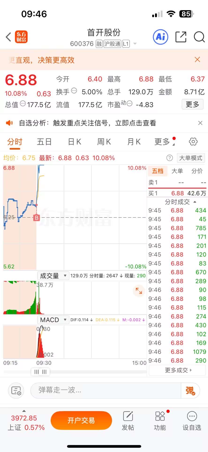 $首开股份(SH600376)$ 今日成功拿下开门红!发了被和谐啦不过问题不大今日绝对不会止步于此滴!只要给明哥点个关注你也可以滴~
