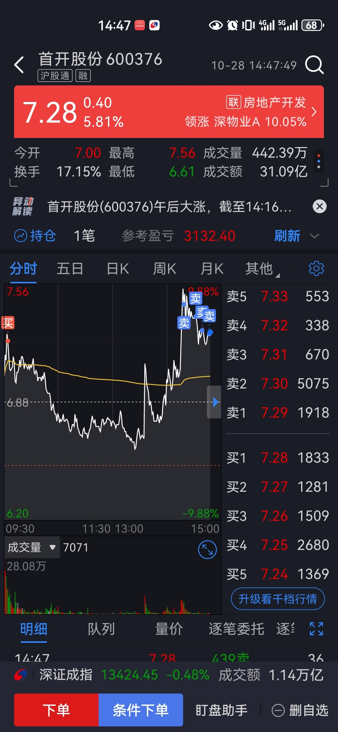 $首开股份(SH600376)$ 疯狂卖,敢留下来绝对是能发财的人