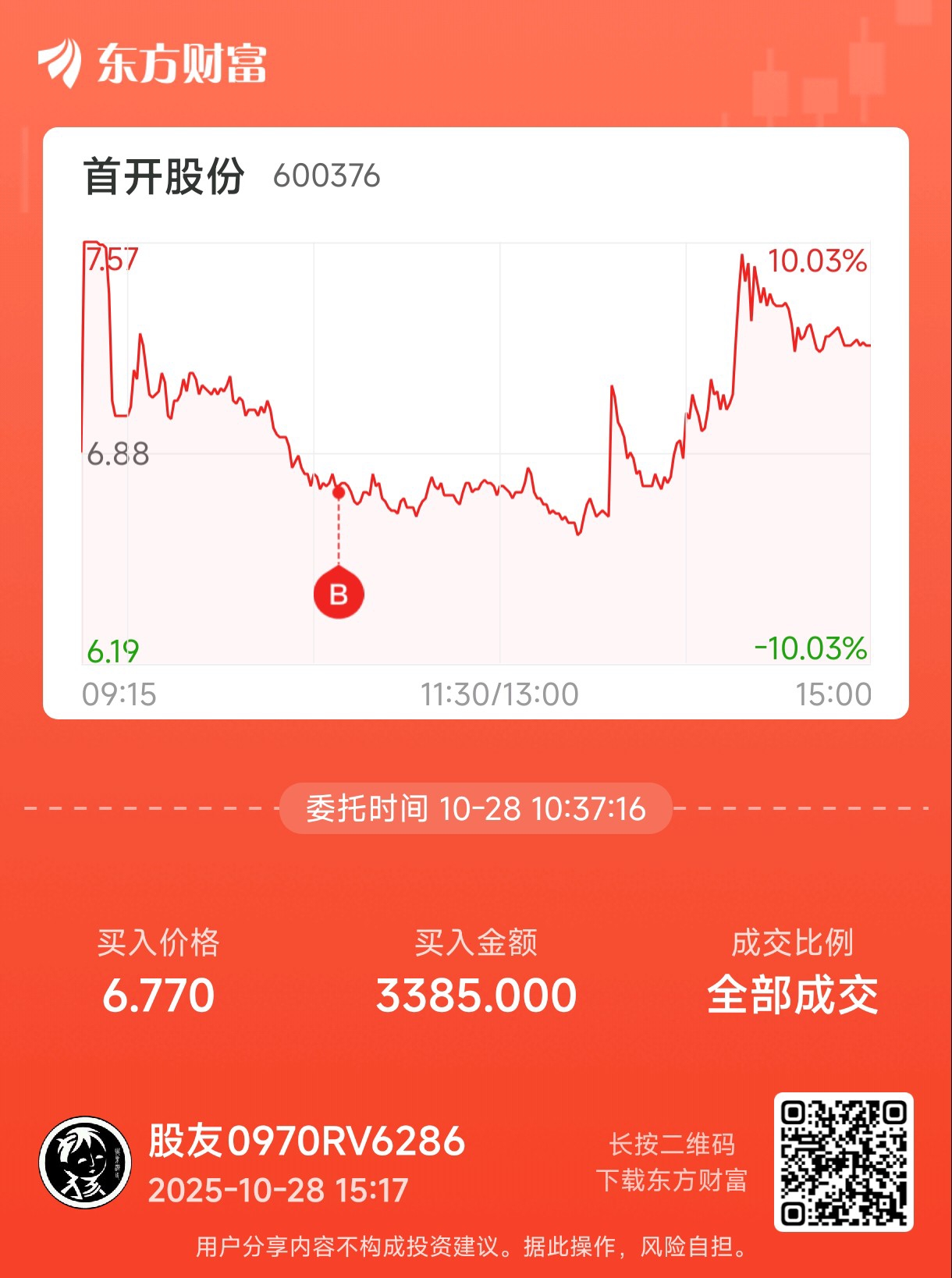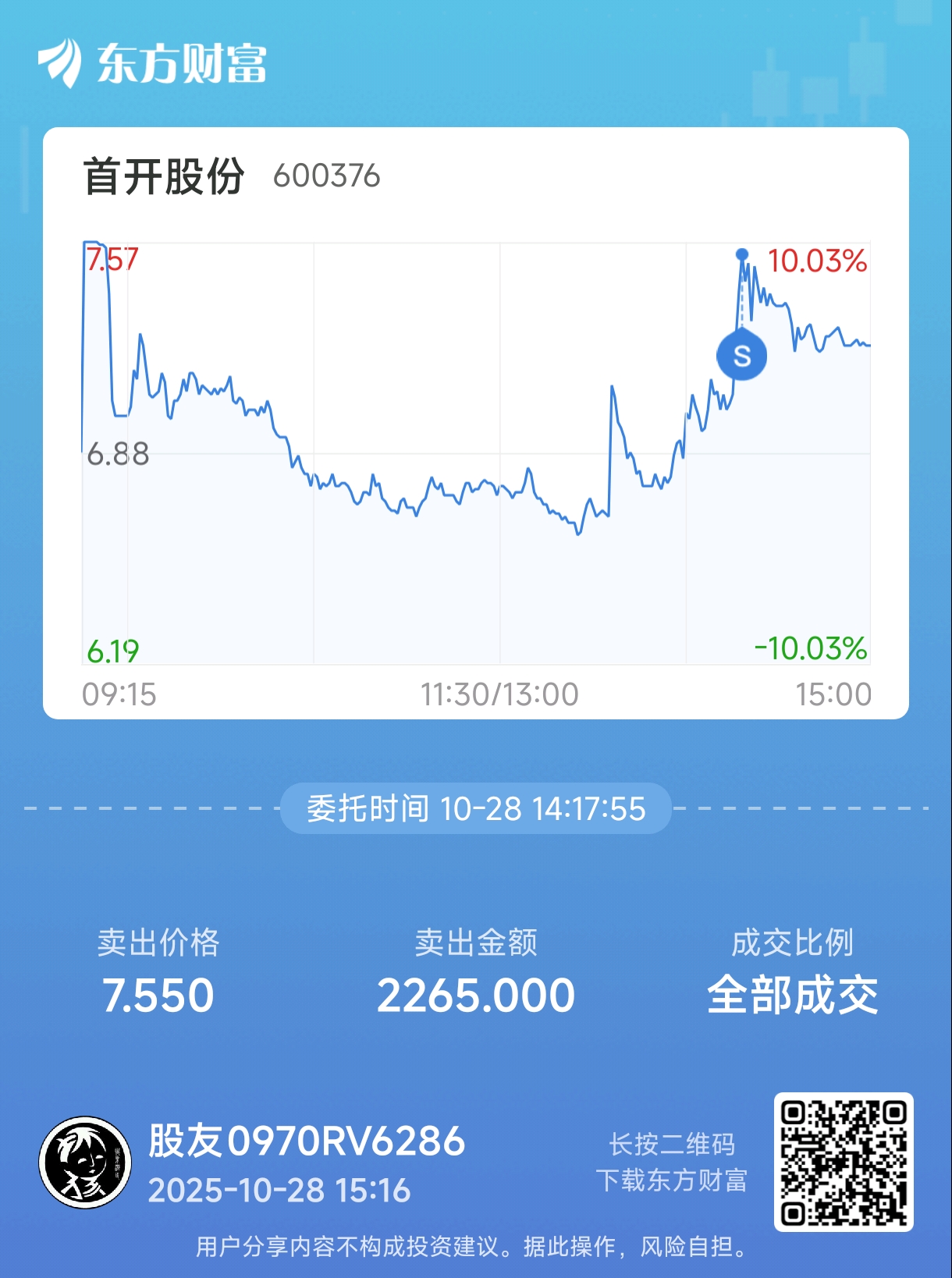 温馨提示: 1.根据《证券法》规定,禁止编造、传播虚假信息或者误导性信息,扰乱证券市场;2.用户在本社区发表的所有资料、言论等仅代表个人观点,与本网站立场无关,不对您构成任何投资建议。用户应基于自己的独立判断,自行决定证券投资并承担相应风险。《东方财富社区管理规定》