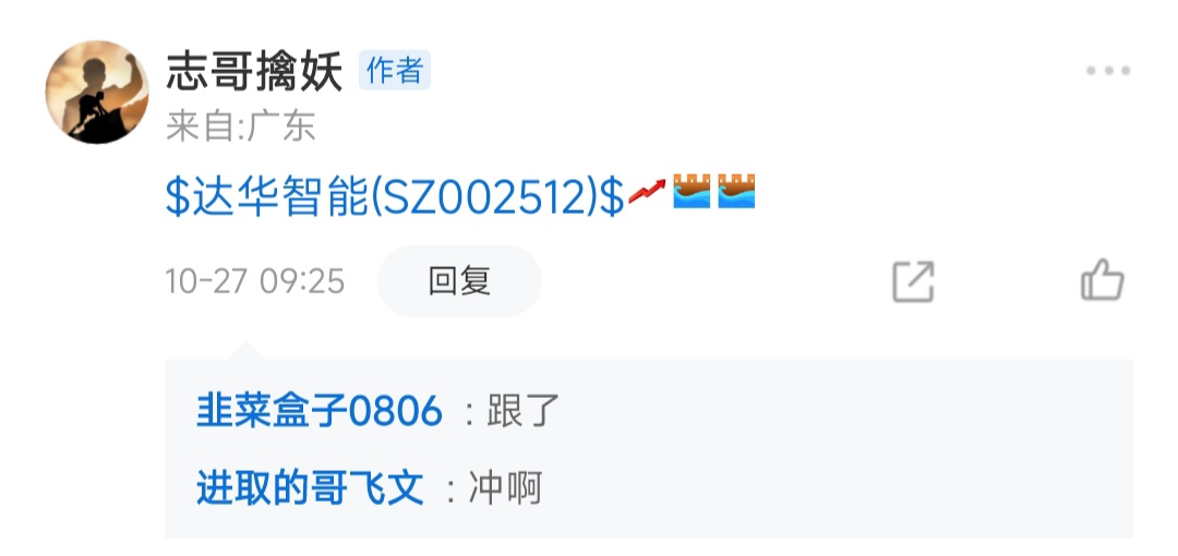 $达华智能(SZ002512)$ 继续上演高举高打换手也充足,在这个位置有望突破前高,看来问题还是不大的,继续格局不动!