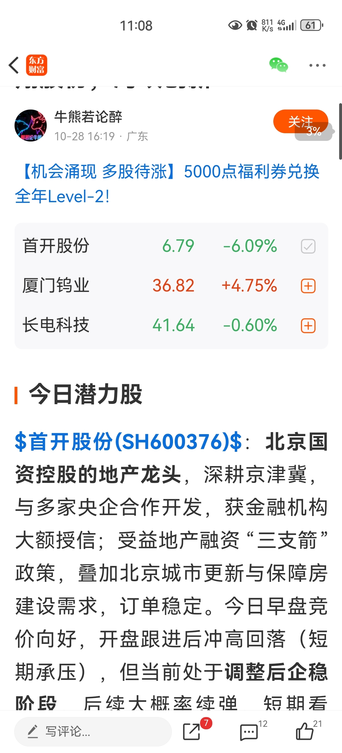 $首开股份(SH600376)$ 昨天这个开了至少七八个小号去吹自己帖子,就知道今天不咋地!!!